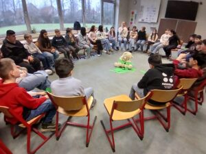 Auch in diesem Schuljahr haben Frau Hölscher und Herr Sahin den Workshop „Stark ohne Schimpfwörter – gemeinsam respektvoll“ erfolgreich im fünften Jahrgang durchgeführt. Mit großer Offenheit, Ehrlichkeit und Motivation beteiligten sich die Schülerinnen und Schüler an den vielfältigen Übungen und Gesprächsrunden.