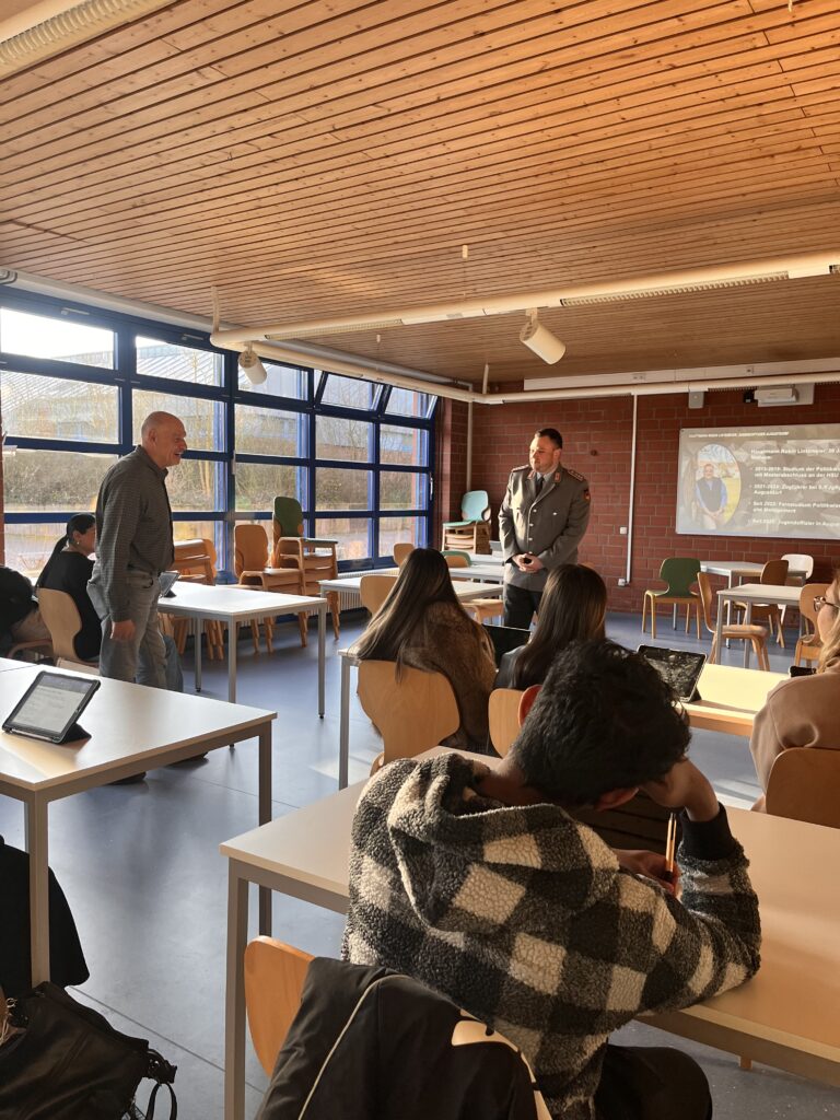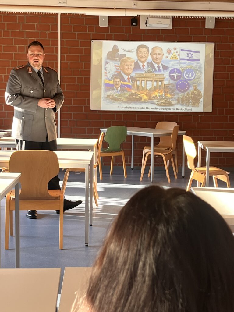 Im Rahmen des Sozialswissenschaftlichen Unterrichts der Grund- sowie des Leistungskurses im Fach durften wir am 03.03.2026 einen besonderen Gast begrüßen: Herr Lintemeier von der Bundeswehr war an unserer Schule zu Besuch und gestaltete einen äußerst informativen und aktuellen Vortrag.