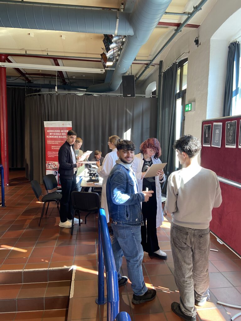 Der Besuch der expoMINT fand im Rahmen der Berufs- und Studienorientierung statt und richtete sich an interessierte Schüler*innen des 9. Jahrgangs. Sie tauschten den Klassenraum für einen Tag ein und bekamen verschiedene Berufslandschaften aus den Bereichen Mathematik, Informatik, Naturwissenschaft sowie Technik präsentiert. Dabei erhielten sie in den Räumlichkeiten der Ravensberger Spinnerei Einblick in die vielfältigen Aufgaben der „Arbeitswelt von morgen“, in die eines dualen Studiums im Bereich MINT und konnten ihre eigenen Fähigkeiten im Austausch mit den Betrieben erproben.