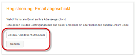 • Die Registrierung kann nun entweder durch Klick auf den Registrierungs-Link oder durch Eingabe des Bestätigungscodes in WebUntis abgeschlossen werden